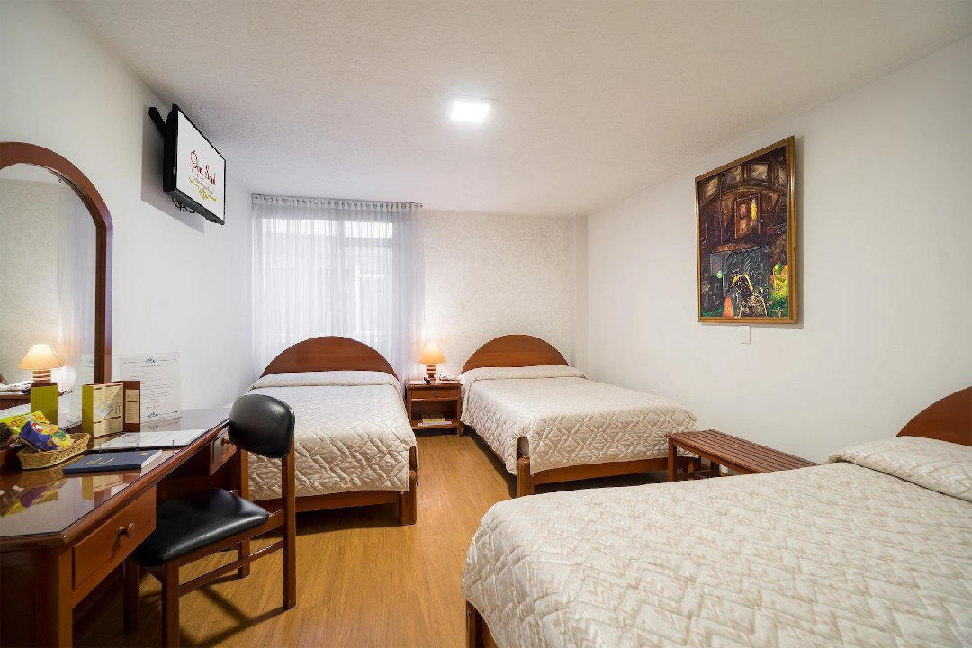 From 287,100 COP / 78.1 USD Per NightWelcome to our spacious and cozy triple room! Here you will find everything you need for a comfortable and relaxing stay. Our triple room features three single beds dressed with soft and comfortable linens, perfect for friends or families traveling together. The modern and elegant decor creates a cozy and relaxing atmosphere to enjoy your time in the room. In addition, the room features ample space to work or study, with a desk and comfortable chair, as well as free Wi-Fi and a flat-screen TV for your entertainment. The room's private bathroom is equipped with all the amenities, including a shower, free toiletries and fluffy towels. Enjoy the breathtaking views from the room's large windows, which let in natural light and create a fresh and bright atmosphere. Don't miss the opportunity to enjoy a comfortable and relaxing stay in our triple room!